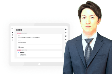 設備トラブル受付から出動手配(ネットショップ)→ワークフロー管理→修繕見積・承認フロー→電子契約→報告→建物カルテ→請求管理まで一気通貫。